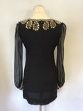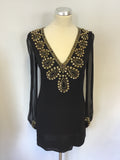 FRENCH CONNECTION BLACK SILK WITH GOLD SEQUINNED & BEADED EMBELLISHED MINI DRESS