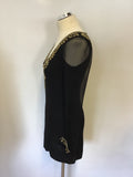 FRENCH CONNECTION BLACK SILK & GOLD BEAD & SEQUIN EMBELLISHED TRIM MINI DRESS SIZE 8