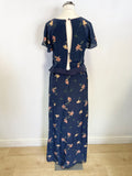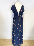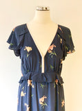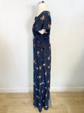 FRENCH CONNECTION DARK BLUE FLORAL PRINT SILK MAXI DRESS SIZE 10