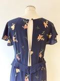 FRENCH CONNECTION DARK BLUE SILK FLORAL PRINT MAXI DRESS