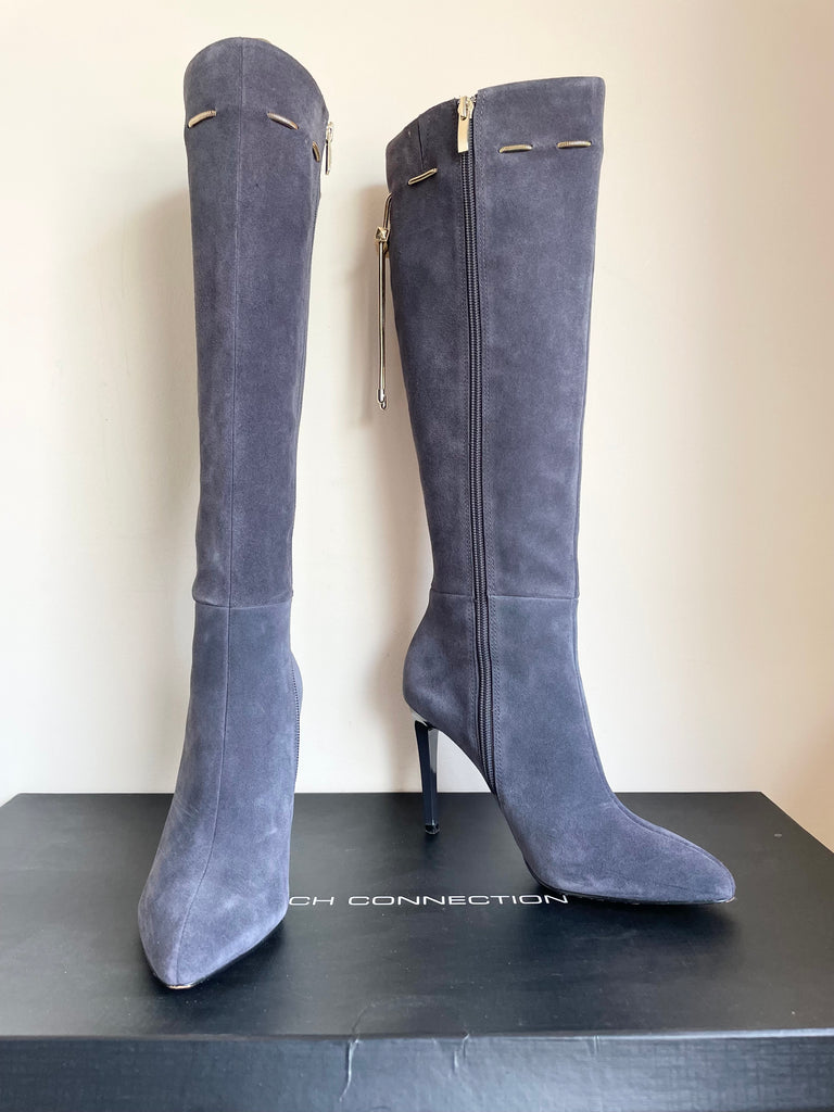 FRENCH CONNECTION MONIKA MERCURY MIST (DARK GREY) SUEDE KNEE LENGTH BOOTS SIZE 6/39