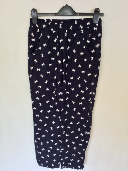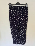 FRENCH CONNECTION NAVY BLUE & WHITE PRINT ELASTICATED WAIST TROUSERS SIZE 8