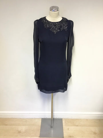 French Connection Blue & Black Stripe Long Sleeve Jumper Dress