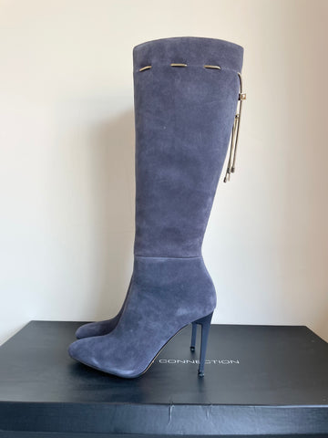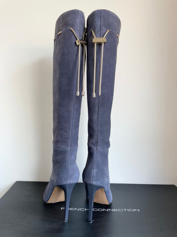 FRENCH CONNECTION MONIKA MERCURY MIST (DARK GREY) SUEDE KNEE LENGTH BOOTS SIZE 6/39