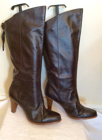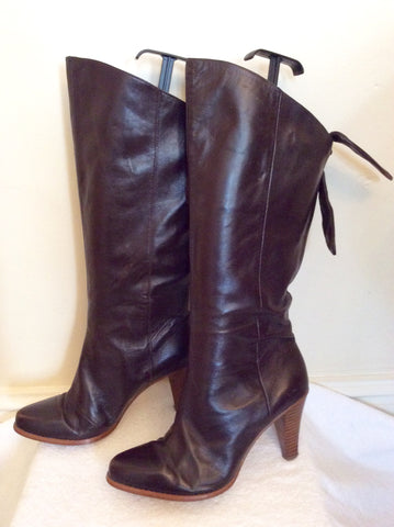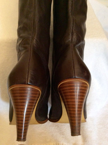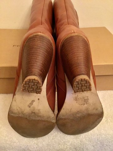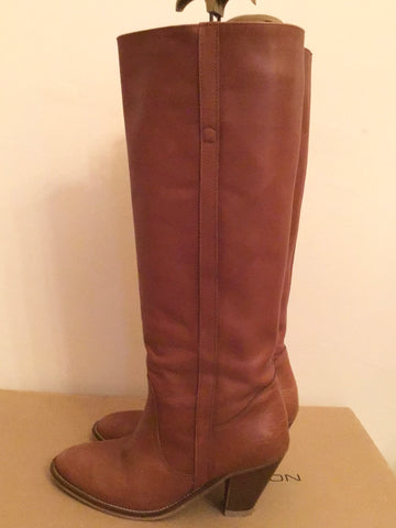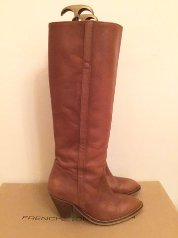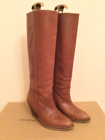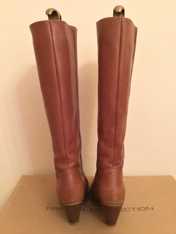 FRENCH CONNECTION KAMILA TAN LEATHER KNEE LENGTH BOOTS SIZE 5/38
