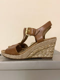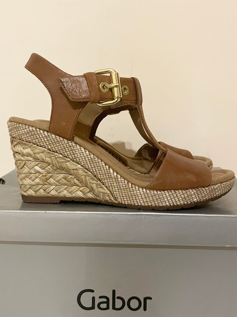 BRAND NEW WITH SLIGHT DEFECTS GABOR TAN KAREN LEATHER WEDGE HEEL SANDALS