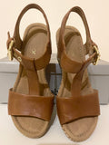 BRAND NEW WITH SLIGHT DEFECTS GABOR TAN KAREN LEATHER WEDGE HEEL SANDALS SIZE 5/38
