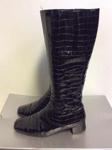 GABOR BLACK PATENT CROC DESIGN KNEE LENGTH BOOTS SIZE 7/40
