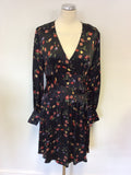 GHOST BLACK FLORAL PRINT LONG SLEEVE DRESS SIZE L