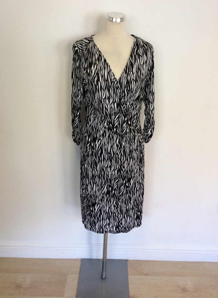 GHOST BLACK & WHITE PRINT WRAP DRESS SIZE 16