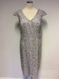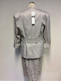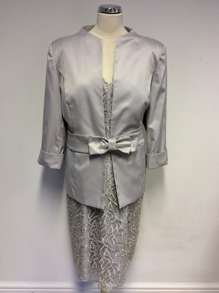 BRAND NEW GINA BACCONI SILVER GREY LACE DRESS & BELTED JACKET SIZE 20