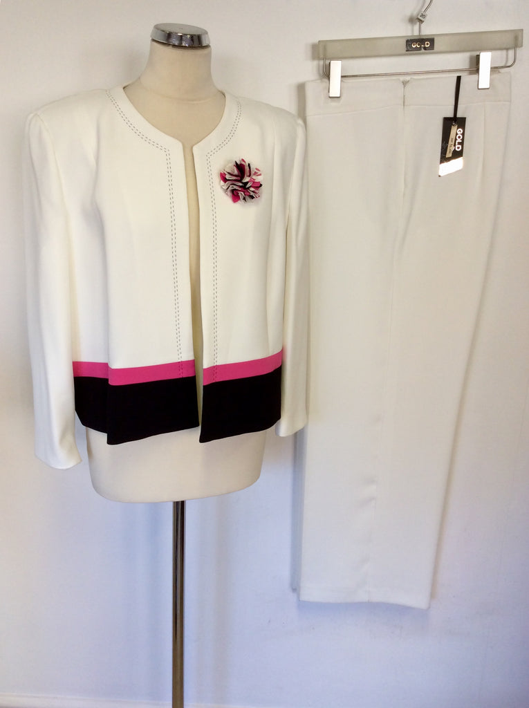 BRAND NEW GOLD BY MICHAEL H WHITE,PINK & BLACK JACKET & TROUSER SUIT SIZE 20