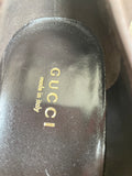 POINTED TOE WITH GUCCI PRINT LOGO TO SIDES AND BROWN LEATHER EDGE TRIMS