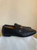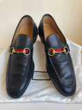 GUCCI BLACK LEATHER HORSE BIT WITH RED & GREEN WEB LOAFERS SIZE 7/40.5