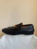 GUCCI BLACK LEATHER HORSE BIT WITH RED & GREEN WEB LOAFERS