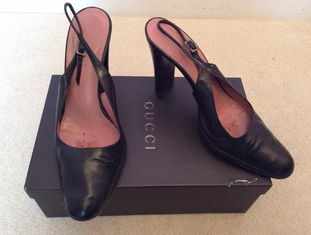 Gucci Black Leather Slingback Heels Size 5/38
