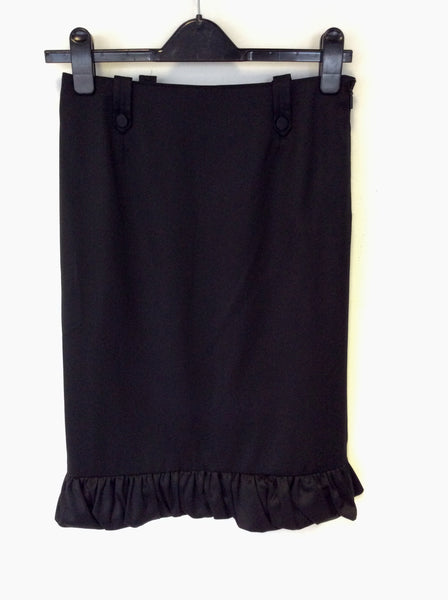 GUCCI BLACK PENCIL SKIRT WITH PUFFBALL PLEATED HEM SIZE 38 UK 10