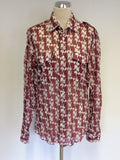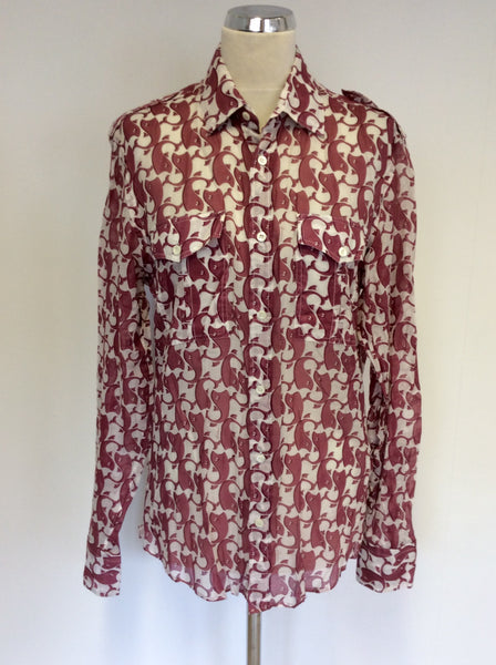 GUCCI DARK PINK & IVORY WHALE PRINT COTTON SHIRT SIZE 16