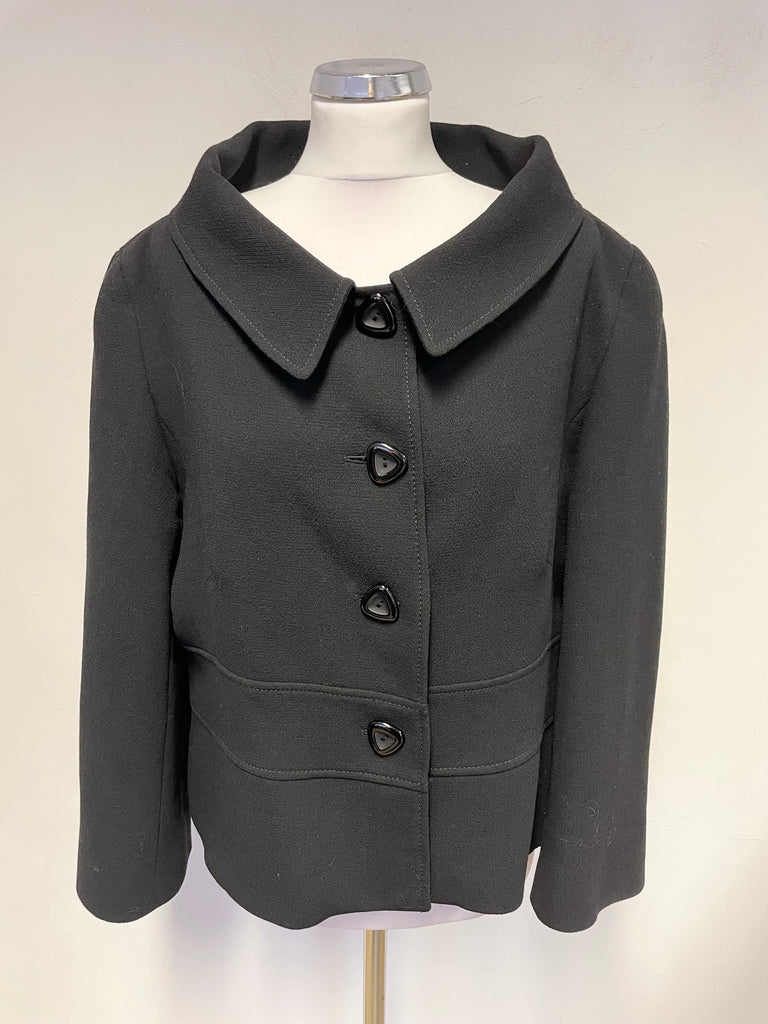 HOBBS 100% WOOL BLACK COLLARED 3/4 SLEEVED JACKET SIZE 18