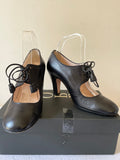HOBBS BLACK LEATHER MINNIE LACE TIE HEELS SIZE 5/38