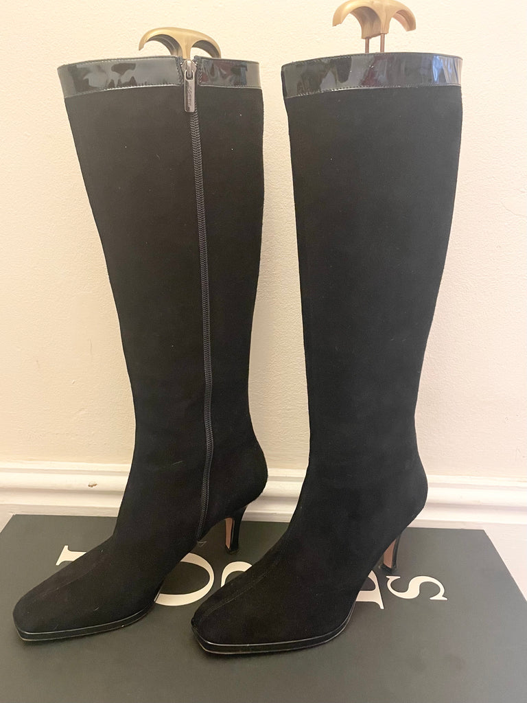 HOBBS BLACK SUEDE KNEE LENGTH HEEL BOOTS SIZE 6/39