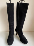 HOBBS BLACK SUEDE KNEE LENGTH HEELED BOOTS SIZE 7/40
