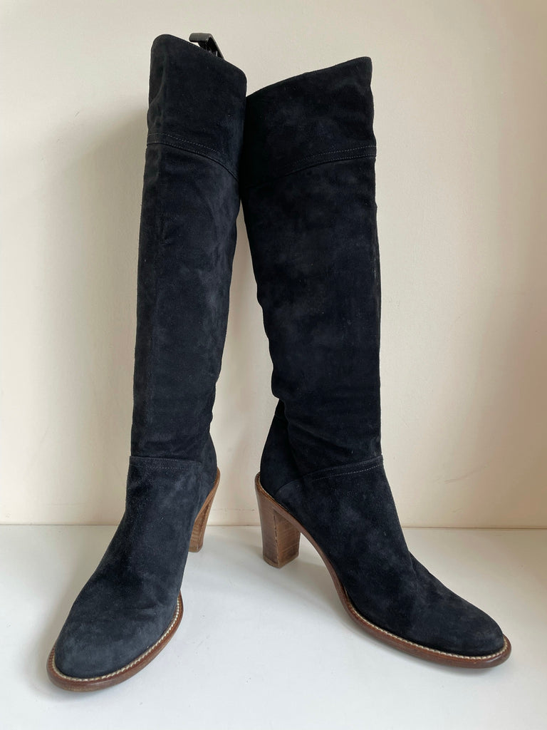 HOBBS BLACK SUEDE PULL ON KNEE LENGTH HEELED BOOTS SIZE 5/38