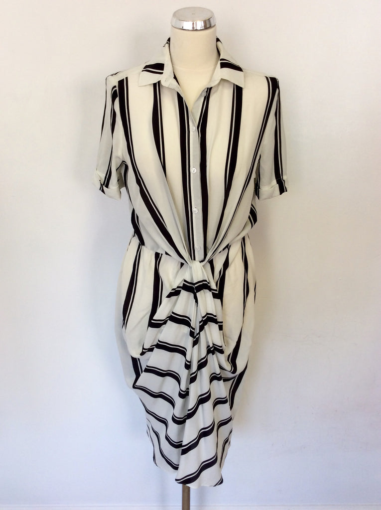HOBBS BLACK & IVORY SILK STRIPE DRESS SIZE 10