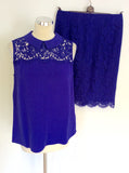 HOBBS BLUE LACE TRIM SILK TOP & LACE PENCIL SKIRT SIZE 12