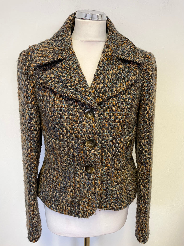 HOBBS BROWN & TURQUOISE WOOL BLEND TWEED JACKET