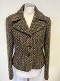 HOBBS BROWN & TURQUOISE WOOL BLEND TWEED JACKET SIZE 14