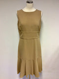 HOBBS CAMEL SLEEVELESS FLUTED HEM DRESS SIZE 12