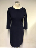 HOBBS NAVY BLUE FINE RIB 3/4 SLEEVE PENCIL DRESS SIZE 10