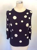 HOBBS NAVY BLUE & WHITE SPOT 3/4 SLEEVE COTTON BLEND JUMPER SIZE 12