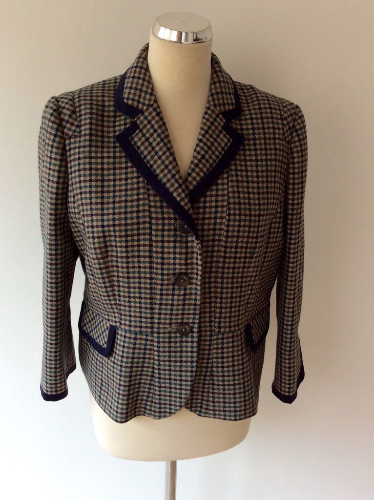 HOBBS NW3 BROWN,BLUE & GREEN CHECK WOOL JACKET SIZE 16