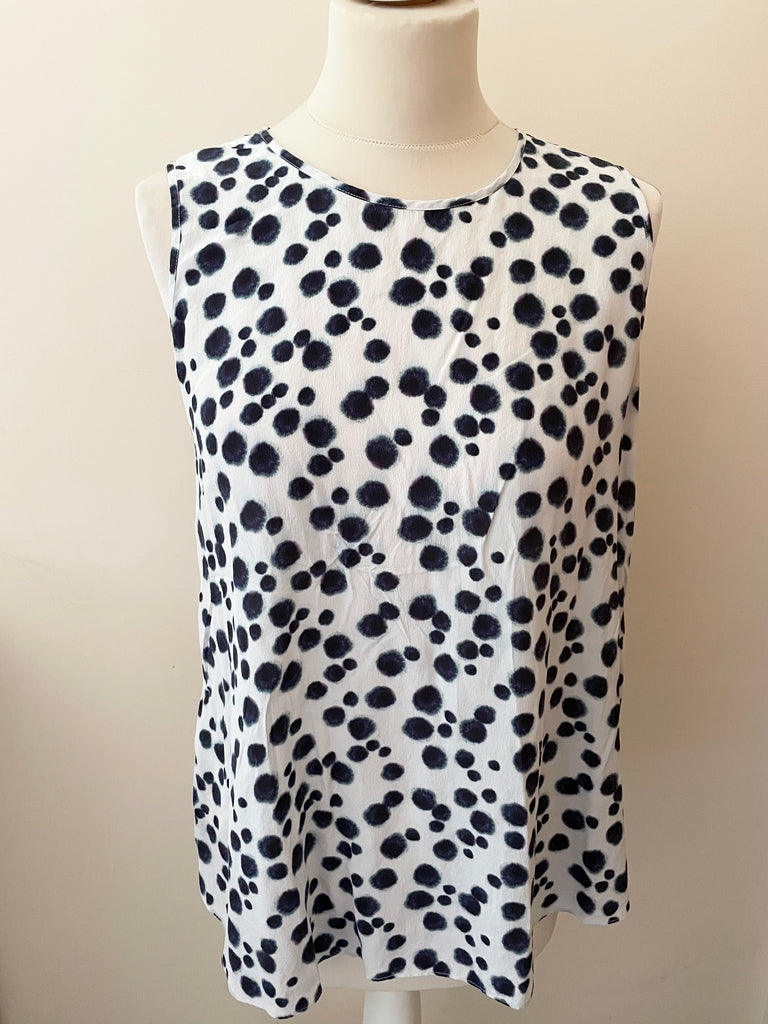 HOBBS SILK PURPLE,BLUE ON IVORY SLEEVELESS TOP