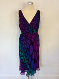 HOBBS PURPLES,PINK & GREENS SPOTTED SILK DRESS SIZE 16