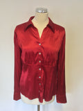 HOBBS RED SILK LONG SLEEVE BLOUSE SIZE 12