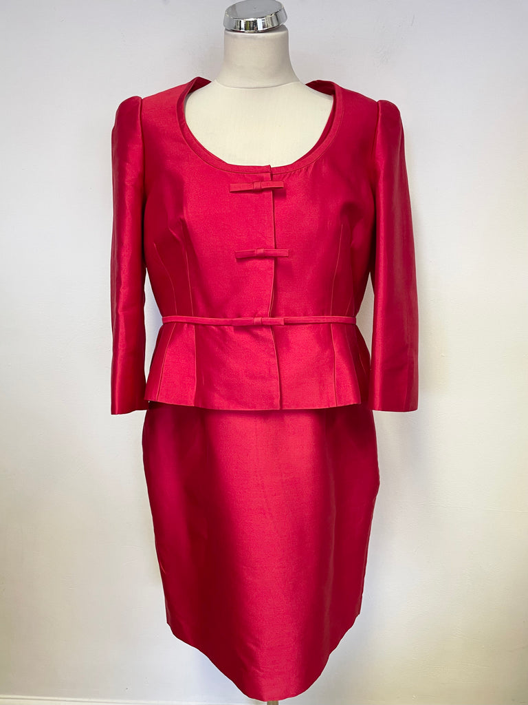 HOBBS RED SILK & WOOL BLEND PENCIL DRESS & JACKET SUIT SIZE 14