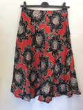 HOBBS RED,WHITE & BLACK FLORAL PRINT LINEN SKIRT SIZE 10