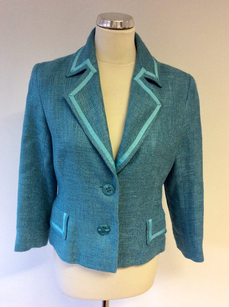 HOBBS TURQOUISE RIBBON TRIM JACKET SIZE 10