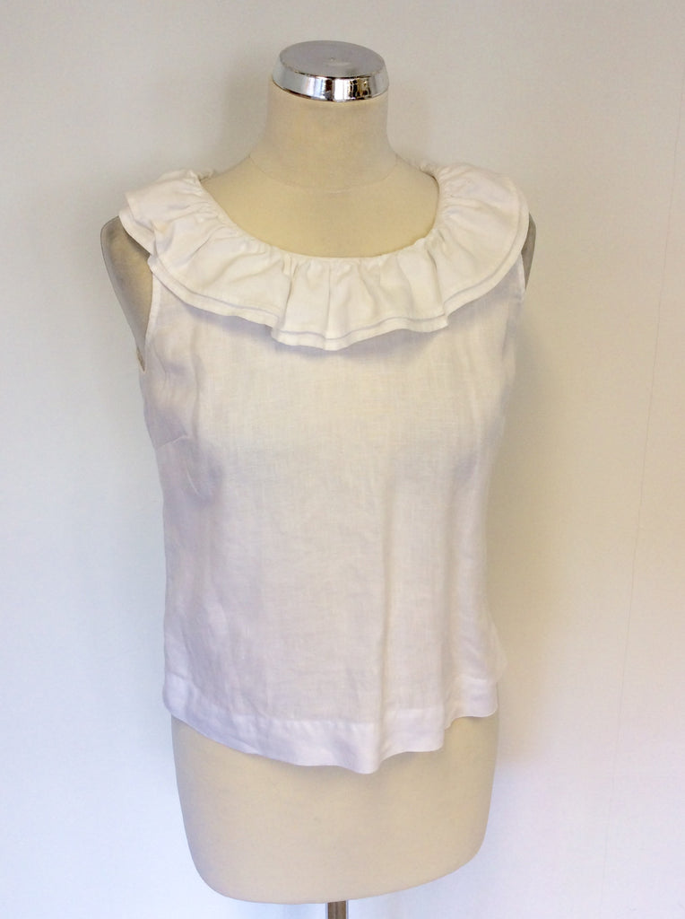 HOBBS WHITE LINEN FRILL TRIM SLEEVELESS TOP SIZE 8