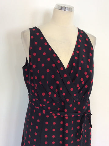 HOBBS BLACK & RED SPOTTED SILK DRESS SIZE 18