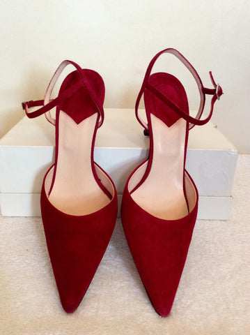 HOBBS TOMATO RED SUEDE PEEPTOE SLINGBACK HEELS SIZE 6.5/ 39.5