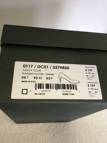 HOBBS JULIETTA PEARLISED OYSTER LEATHER HEELED COURT SHOES SIZE 7/40