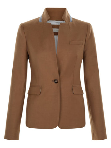 COLLARLESS WITH WATERFALL NECKLINE SHAPED TO FALL LONGER TO FRONT