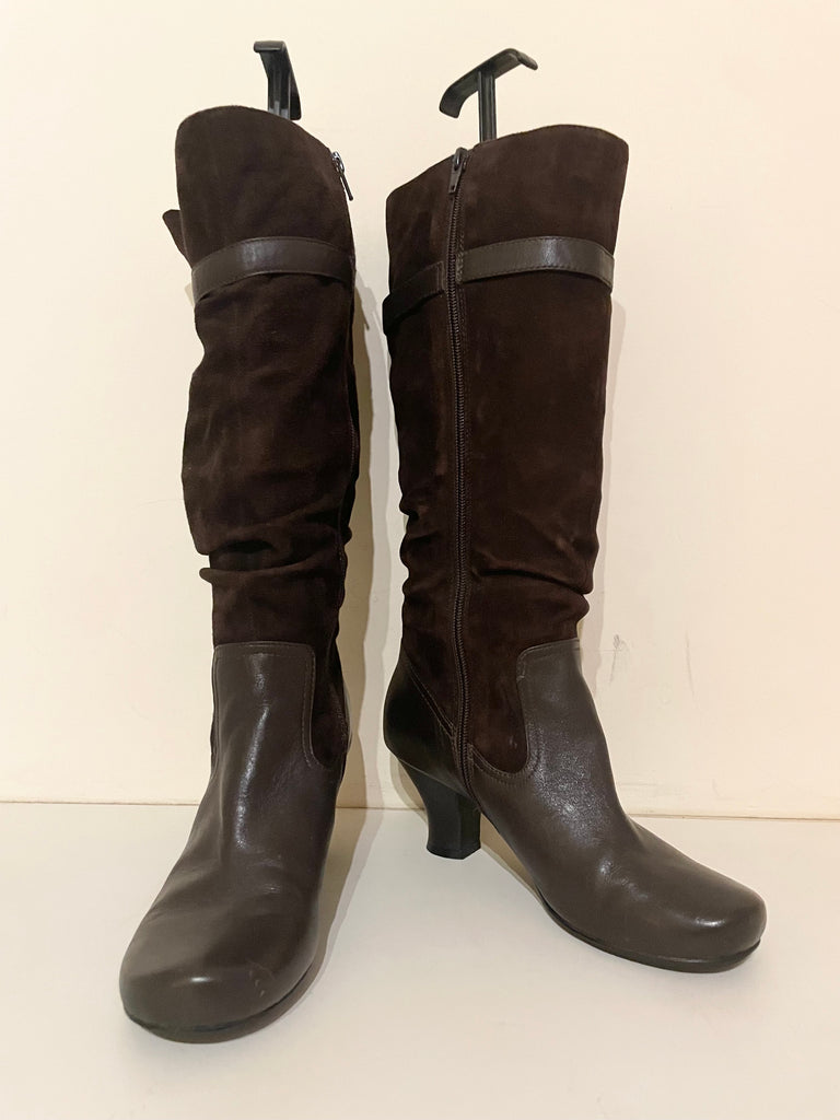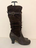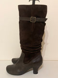 HOTTER CHARLENE DARK BROWN LEATHER & SUEDE KNEE LENGTH BOOTS SIZE 6/39