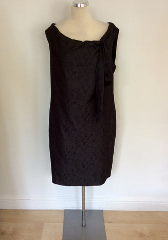 HUGO BOSS BLACK EMBOSSED PRINT SILK BLEND SHIFT DRESS SIZE 14