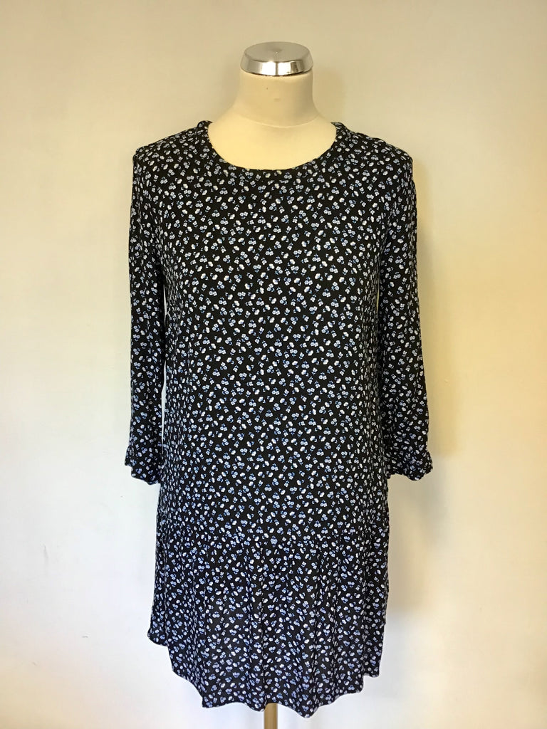 HUSH NAVY BLUE & WHITE FLORAL PRINT 3/4 SLEEVE SHIFT MINI DRESS SIZE 6