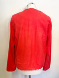 HUSH CORAL COLLARLESS LONG SLEEVE COTTON JACKET SIZE 12
